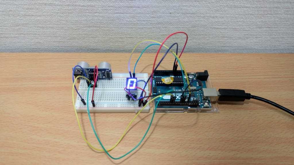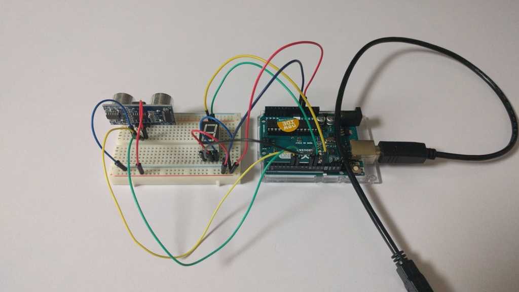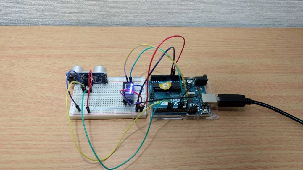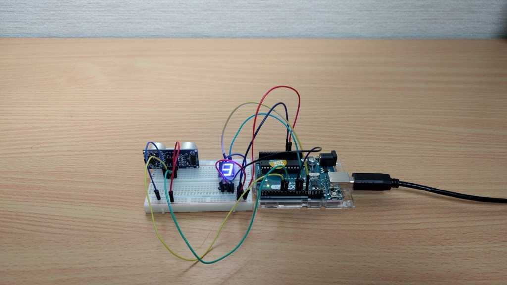 以前試した超音波距離センサと 7 セグを利用して簡易超音波式メジャーを作成しました。