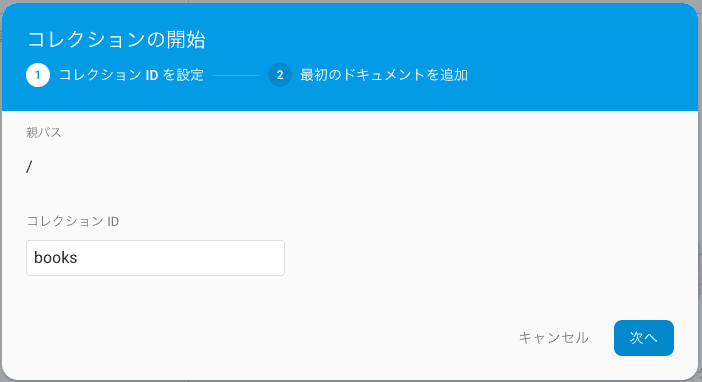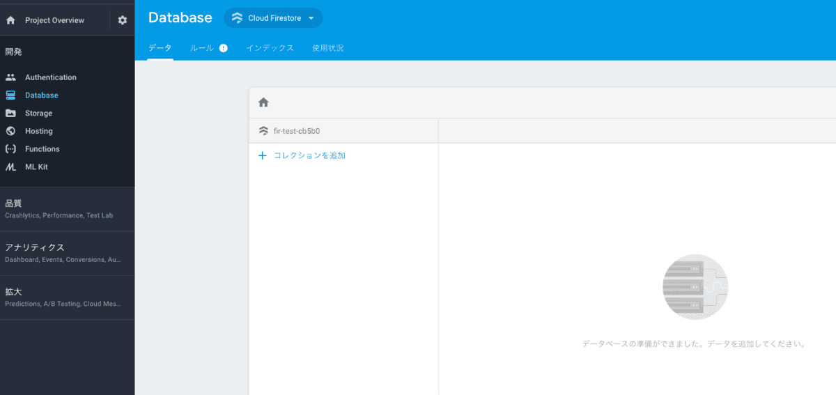 プロジェクト毎の Firebase コンソール > Firestore から Firestore データベースを作成します。中身は空で大丈夫です。