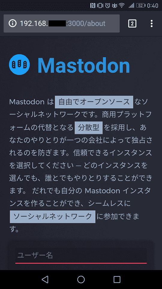 公式の mastodon では arm に対応していないため、自分で hypriot の alpine からビルドに挑戦し、イメージのビルドまではいったんですが、docker-compose build/ run の段階でどうにもならず死んでいました。
