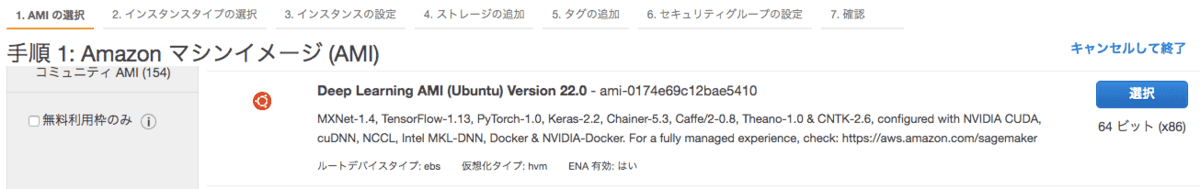 そこで今回は AWS の EC2 インスタンス p2-xlarge と、AMI Deep Learning AMI (Ubuntu) の組み合わせで環境を作ります。